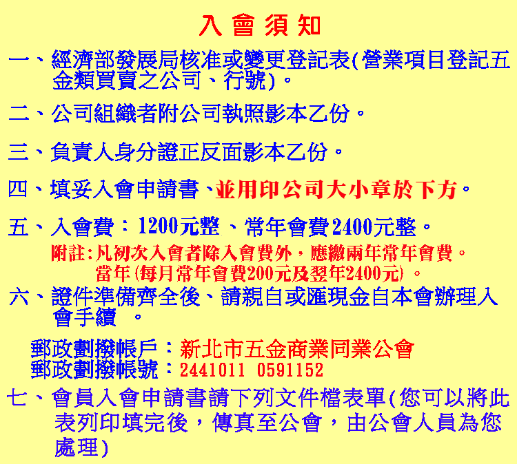入 會 須 知